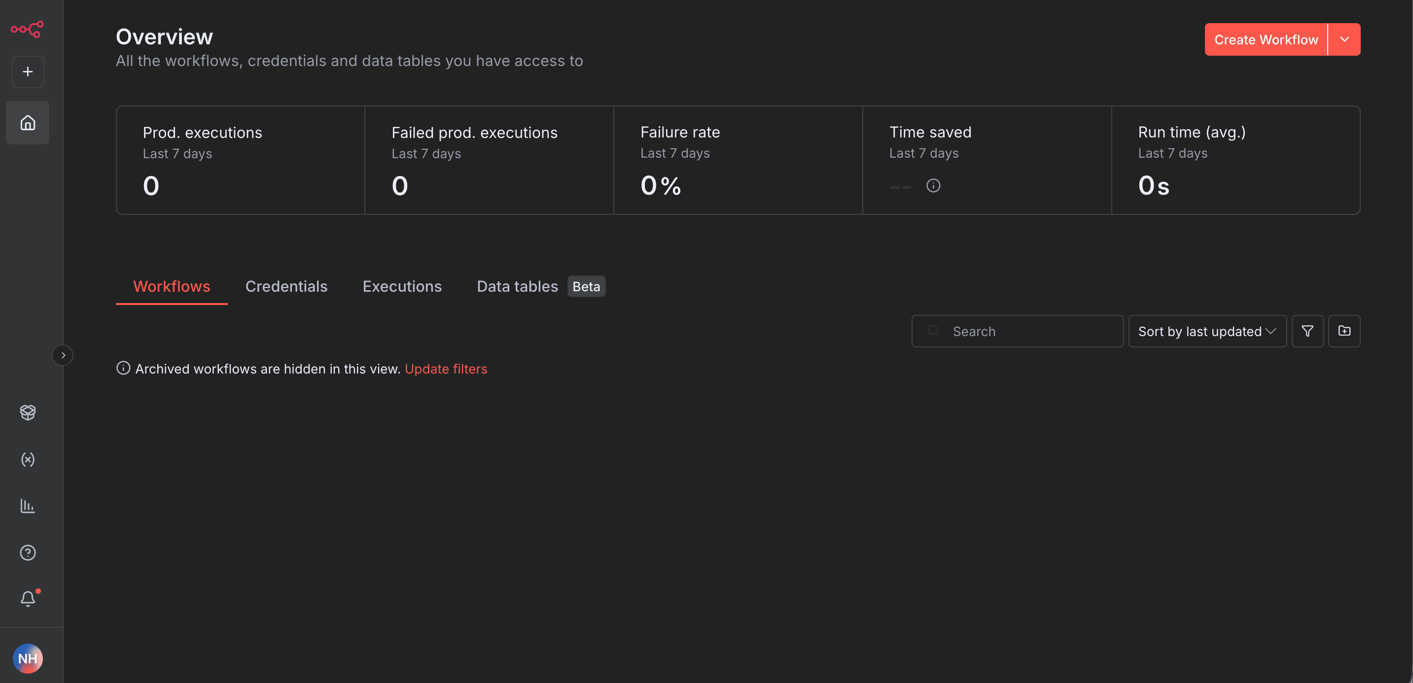 Sekarang klik Links yang ada di halaman itu, dan klik linknya. Nanti kita akan dibawa ke halaman register n8n. Silakan lakukan registrasi dan nanti setelah berhasil hasilnya akan seperti ini