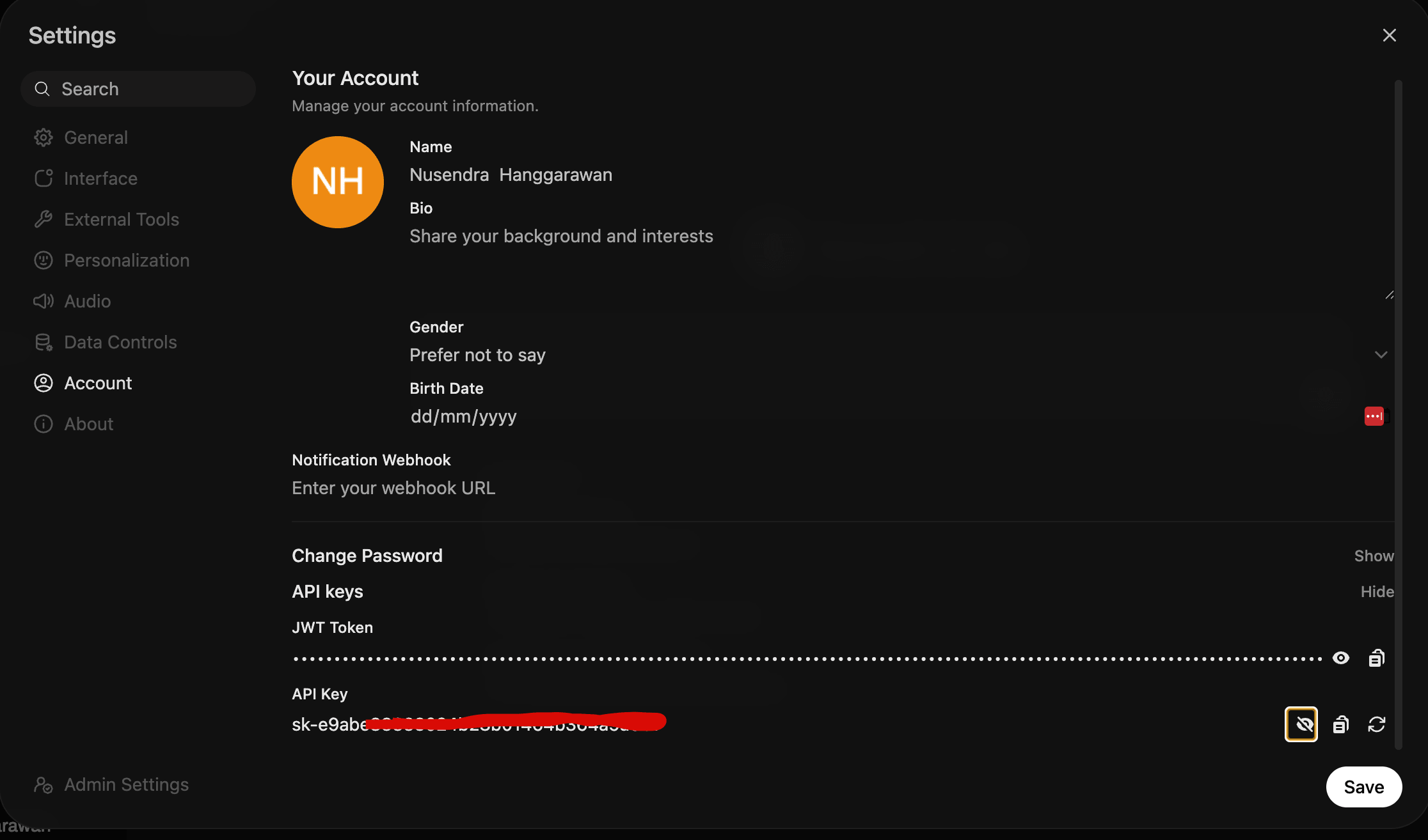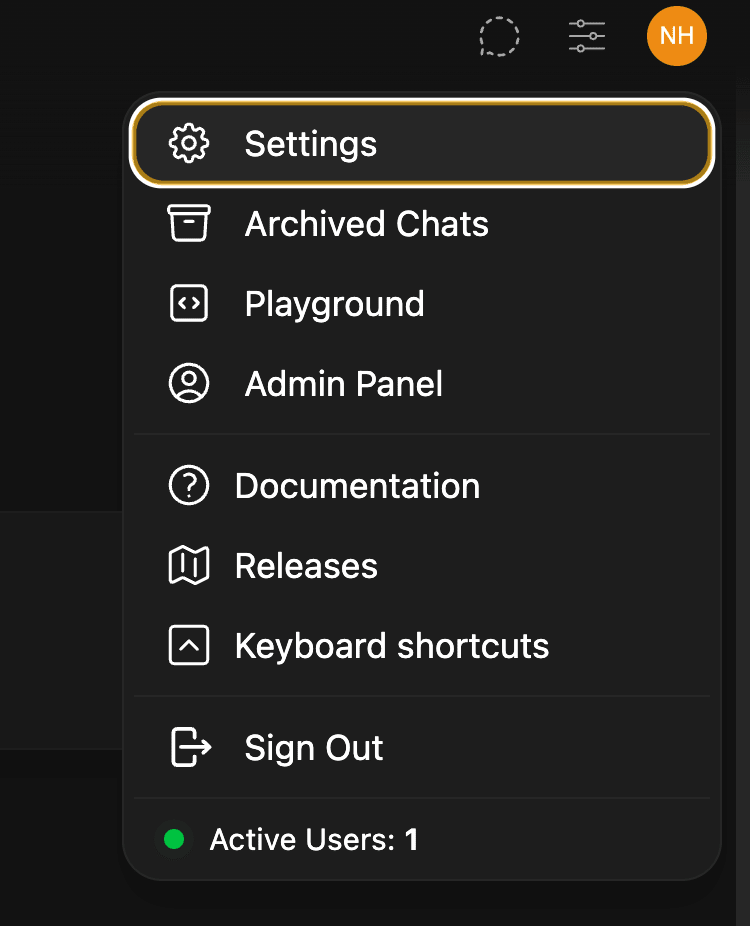 Klik avatar yang ada di kanan atas di halaman Ollama web ui dan klik Settings.