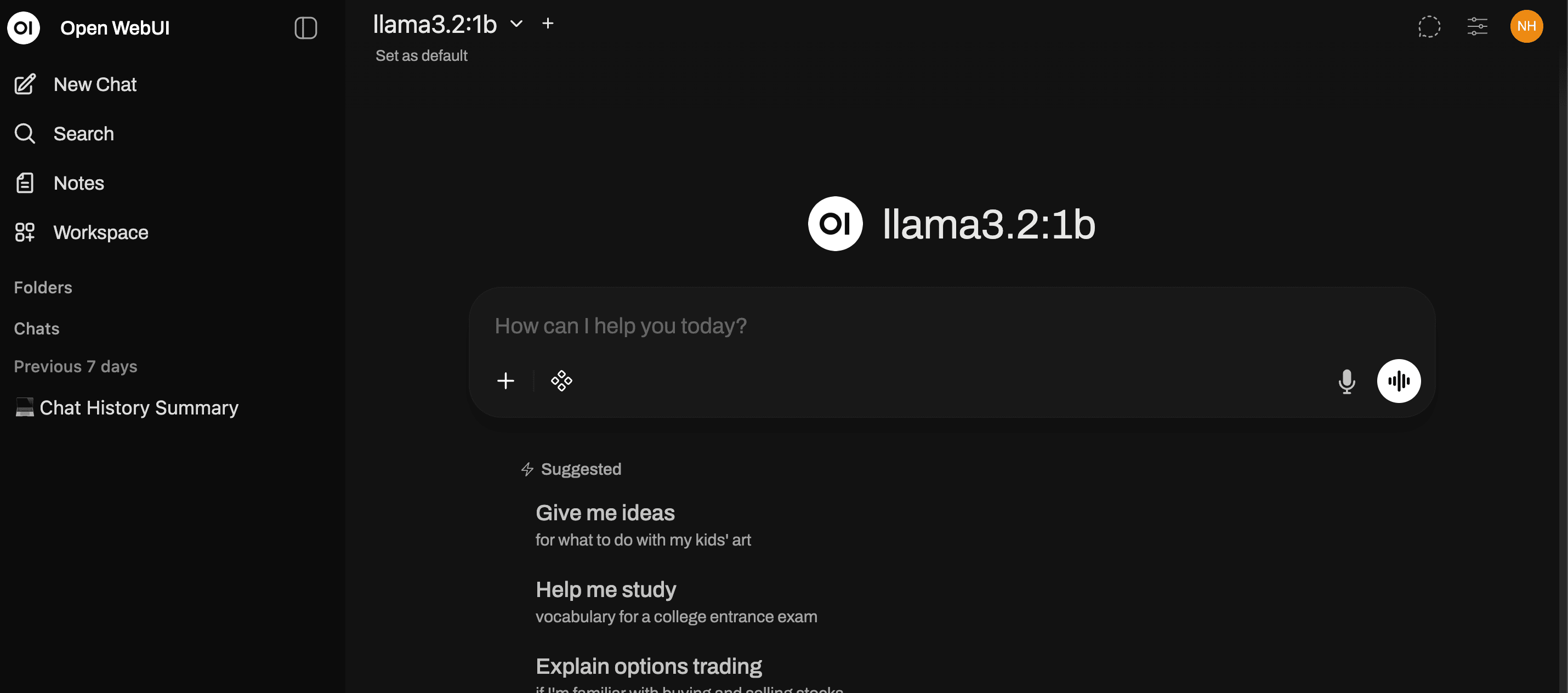 ollama pull llama3.2:1b Tunggu prosesnya hingga selesai. Jika sudah selesai kita bisa masuk ke halaman Ollama service di Coolify kita dan klik linknya (Ada di menu Links), lakukan register dan nantinya akan terlihat halaman Ollama seperti dibawah ini.