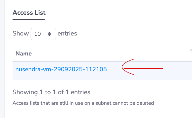 Kemudian di halaman VPC, scroll ke paling bawah dibagian Access List, klik nama VM nya